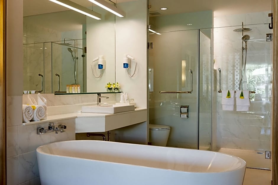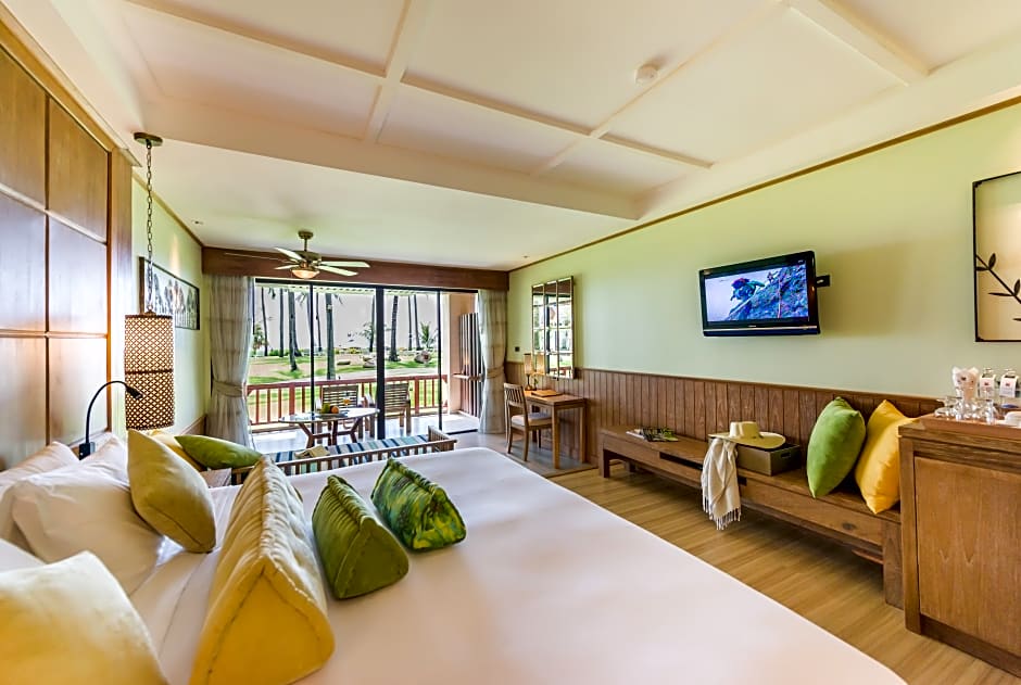 Facilities showcase a beachfront vibe with an Outdoor swimming pool (free), a Kids' club (free), Restaurant, and Private Parking (free). Free Wifi and a Fitness center (free) keep things convenient, while a Balcony and Terrace offer relaxing spaces with garden views. For relaxation, a Spa (extra charges), Spa tub, Sauna (extra charges), and Massage (extra charges) are available, along with Shuttle service (extra charges) and Meeting/Banquet facilities (extra charges).